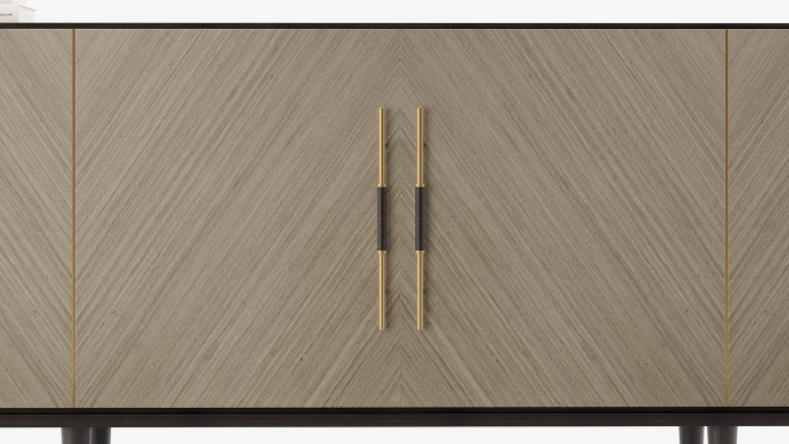 "FRATO’s jeweller’s eye for detail can be seen in the SANTORINI sideboard, which is accessorised with unexpected brushed-brass details from the handles to the framework. Brushed brass detailing embellishes the high-gloss wood veneer for a piece that’s both sleek and unique. Slender legs and slim brass handles lend the aesthetic an air of lightness. "