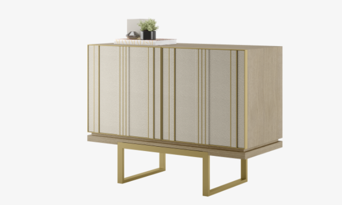 The ASCOT Cupboard channels the aesthetics of Brutalist architecture which is characterised by its use of rigid geometrics and blocky forms. Neat brass stripes placed at irregular intervals add an unexpected rhythm to the front of the wonderfully urbane Cupboard.