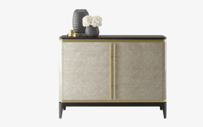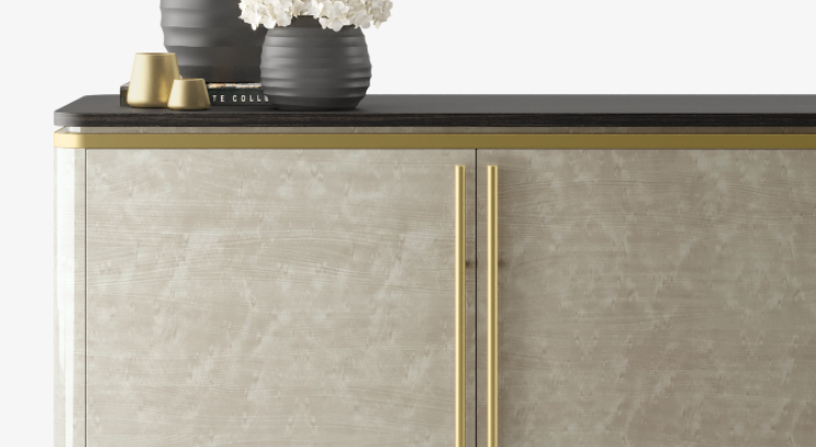 Not only does our SIENA Cupboard feature a highly unique wood veneer, it’s finished with fine brushed brass handles that complement the brass trim and add an air of lightness to the overall design.