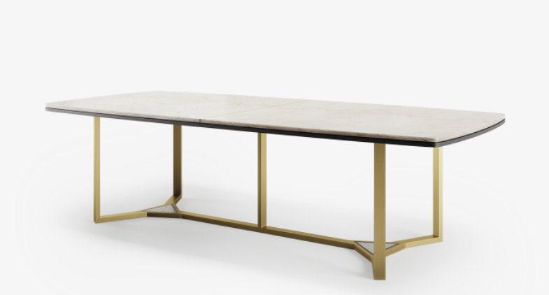 Gather friends and family around the ARENDAL II dining table. The perfect space for entertaining, it features an elegant marbled top and brushed brass base.