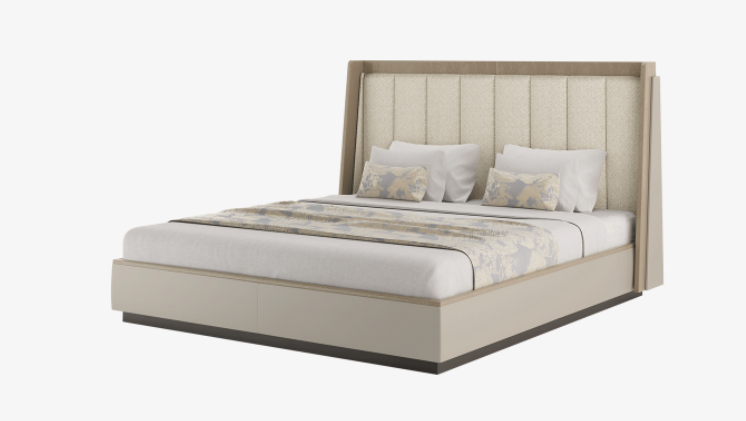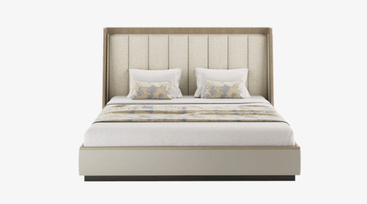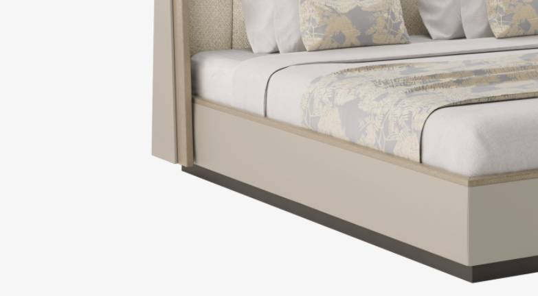 Envelop yourself in luxury with the cocooning COEN bed, which features a tall upholstered headboard and radiates hotel-style comfort.