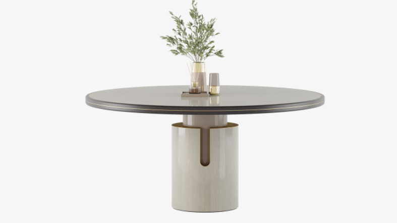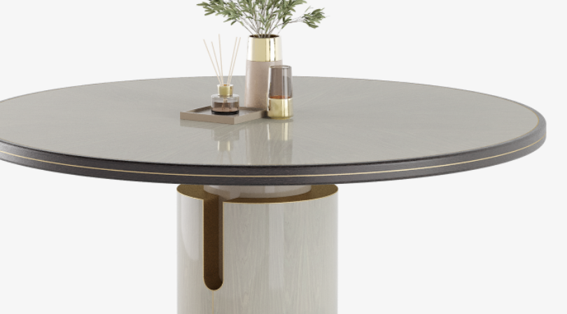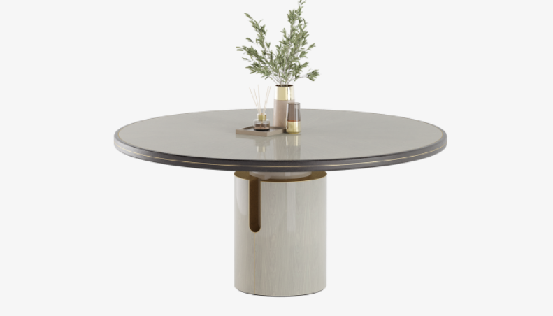 Add instant warmth and intimacy to your kitchen or dining room with the PASADENA dining table. Its round tabletop and cylindrical base are immediately inviting, while an enduring mix of wood veneers and brushed brass details will wear beautifully with time and use.