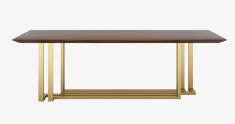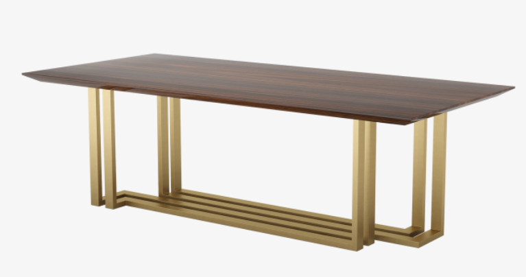 If you're looking for a dining table with impact, the QUEENSLAND is it. The design's expansive rectangular surface is crafted from dark wood veneer and rests on free-flowing brass legs, that stretch from one end of the table's 240 centimetres to the other.