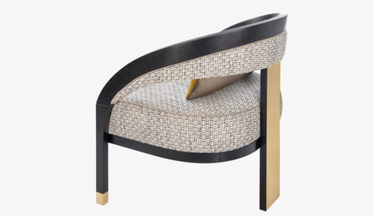 A statement seat, the unexpected AMER is one of our most sculptural armchairs. Featuring a tripod base and sweeping wooden frame, it ups the drama further by incorporating accents of brushed brass in unexpected and dynamic ways.