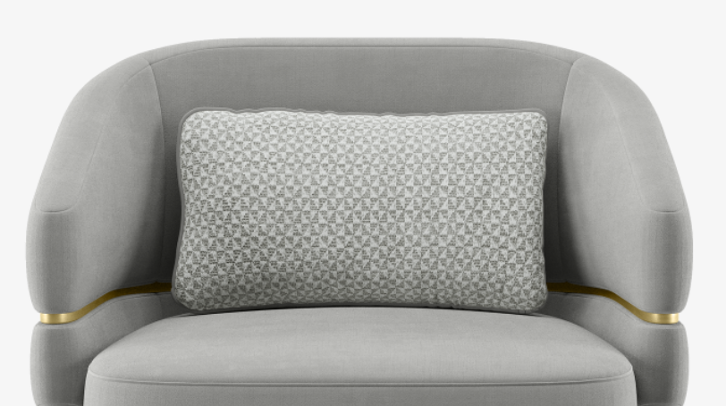 The velvet-upholstered CAIRO Armchair packs a lot of personality into its neat design, which features brushed-brass feet and a striking ‘belt’ that loops around the backrest and arms.