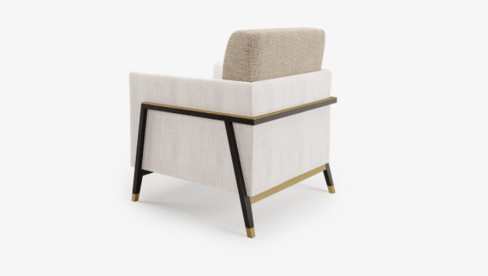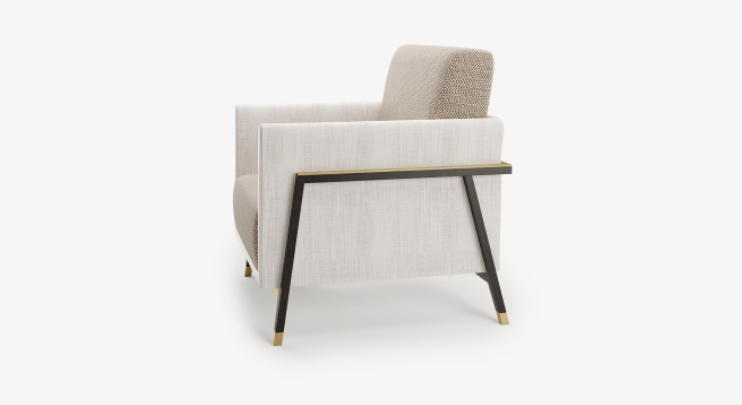 Named after the Latvian capital renowned for its art nouveau architecture, the mesmerising RIGA armchair draws inspiration from early 20th-century design styles, placing an inviting seat within a visible framework crafted from solid wood and brushed brass. Juxtaposing upholstery provides a final flourish.