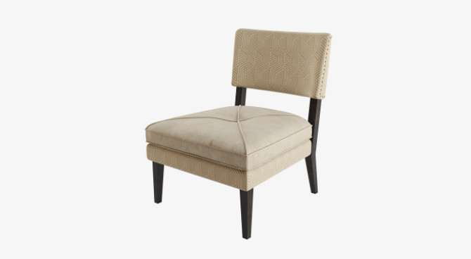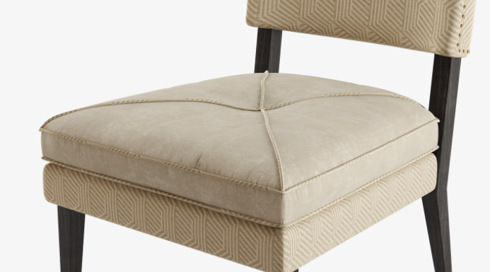Our elegant BASEL chair features a classic silhouette that's elevated through its distinctive use of upholstery, which includes a plain velvet and a graphic print. Further design flourishes include a solid dark wood structure and metal studs, which outline the backrest.