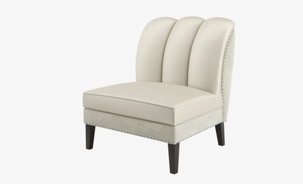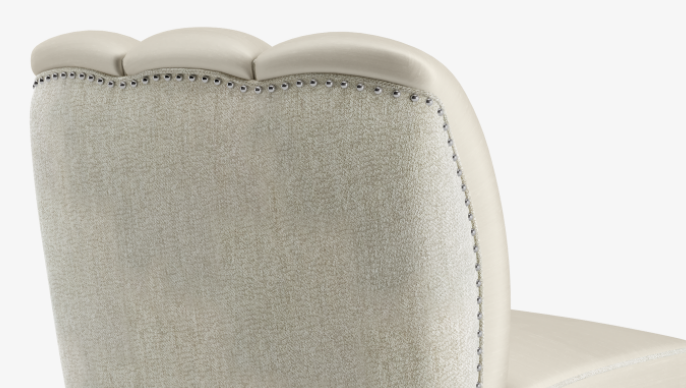 A blend of soft curves and neat angles, the PHILADELPHIA chair exudes sheer luxury. Satin upholstery emphasises the contours of the seat, while a complementary fabric finished with metal studs provides contrast. Solid dark wood legs deliver the finishing touch.