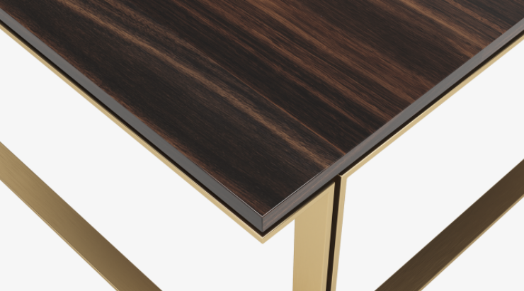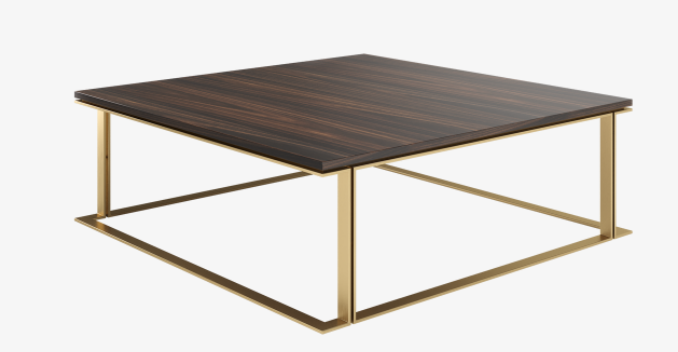 Part of a three-piece collection, the striking BRISBANE coffee table is distinguished by its architectural metallic base. Above, a perfectly square top formed from glossy wood veneer provides ample surface space that can service several seats when placed centrally.