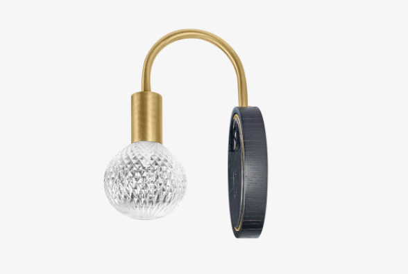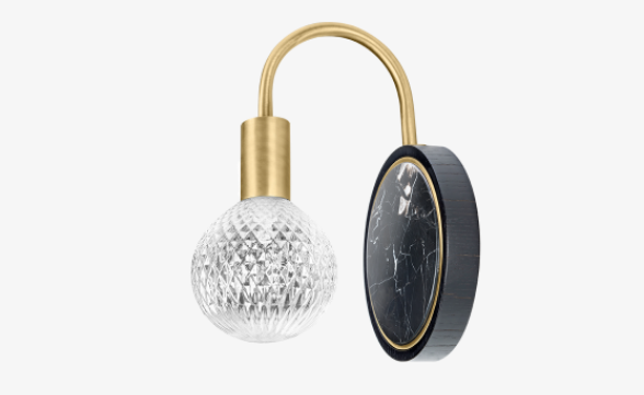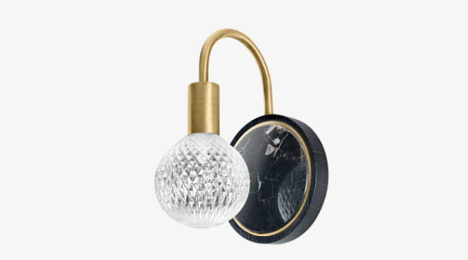 We’ll never tire of admiring the TRIESTE Wall Lamp, whose cut-glass bulb diffuses light beautifully and is suspended from a gentle arc of brass anchored in solid stone.