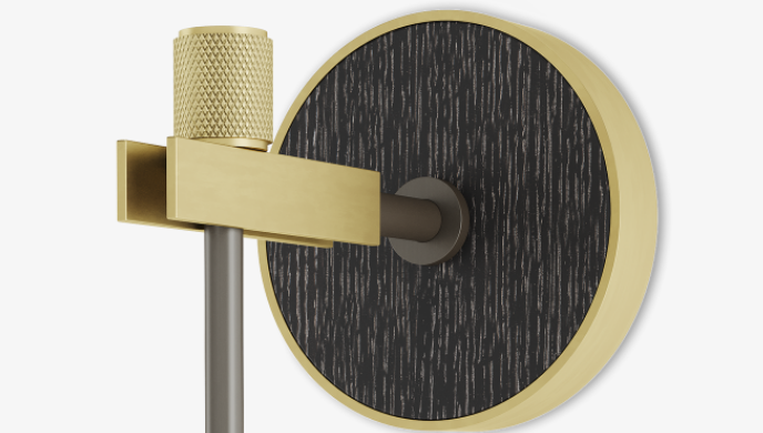 For an all-time classic design, look to the sophisticated ZURICH wall lamp. Featuring a double-silk shade, its structure blends brushed, knurled and oxidised brass to stunning effect, while a circle of wood veneer provides a note of contrast.