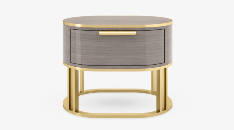 The dashing DALLAS Bedside Table, crafted from glossy wood veneer and brushed brass, features a single, deep drawer for all your night-time essentials.