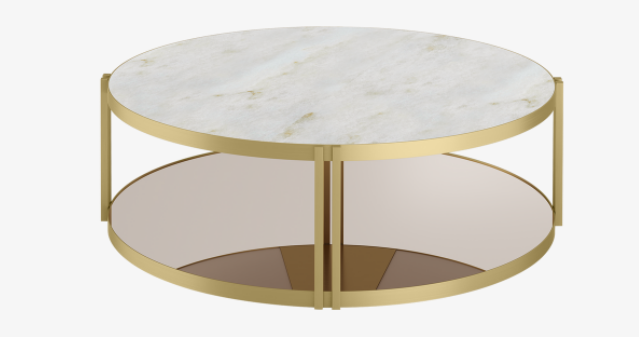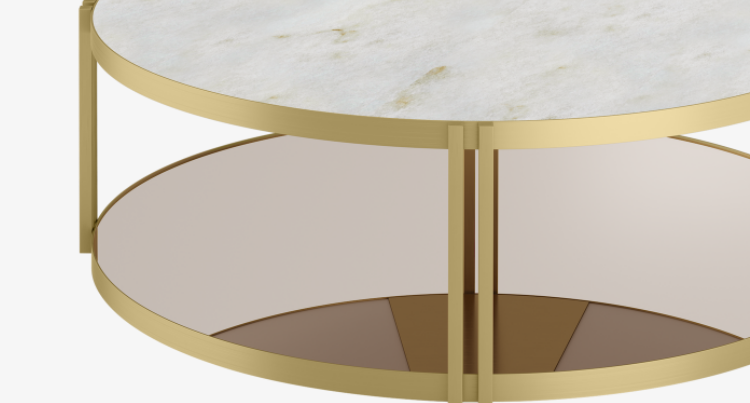 The SOUL Coffee Table takes a humble silhouette and elevates it with refined materials. Featuring two circles supported by four twin brackets, it contrasts pale stone with the warmth of brushed brass, elegantly reflecting all of the above in a base of bronze mirror.
