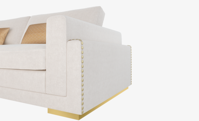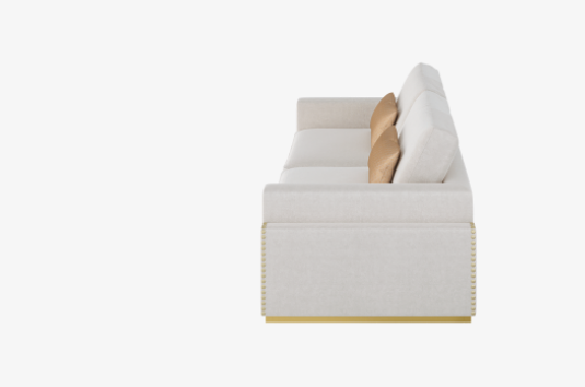"The MINNESOTA sofa commands attention with its solid form. Crafted from velvet, it's ultra comfortable and the deep cushions invite you to sink in and relax after a long day. "