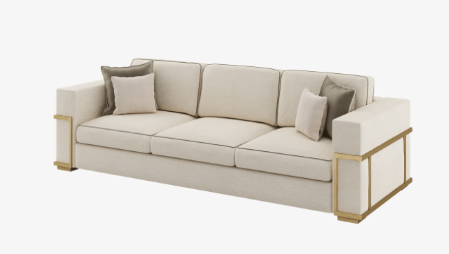 A series of unexpected details set the PABLO sofa apart. Angular arms are softened with loose-fit back and seat cushions, each are outlined with contrast satin piping, while a decorative metallic frame and feet add originality and lustre.
