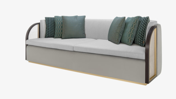 "As inviting as the Eternal City, the ROME sofa beckons you with curved arms, complete with characteristic rattan panels. It's finished with velvet and linen, making it ultra-cosy to sink into. "