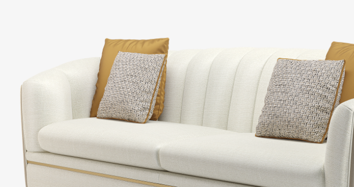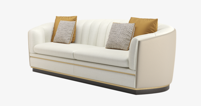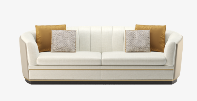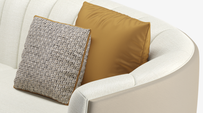 A classic tuxedo-style design, the chic VENICE sofa showcases the expertise of FRATO’s master craftsmen, who seamlessly upholster the design’s curved backrest in deeply cushioned sections and a contrasting fabric across the rear. Metal detailing at the base adds a pleasing point of difference.