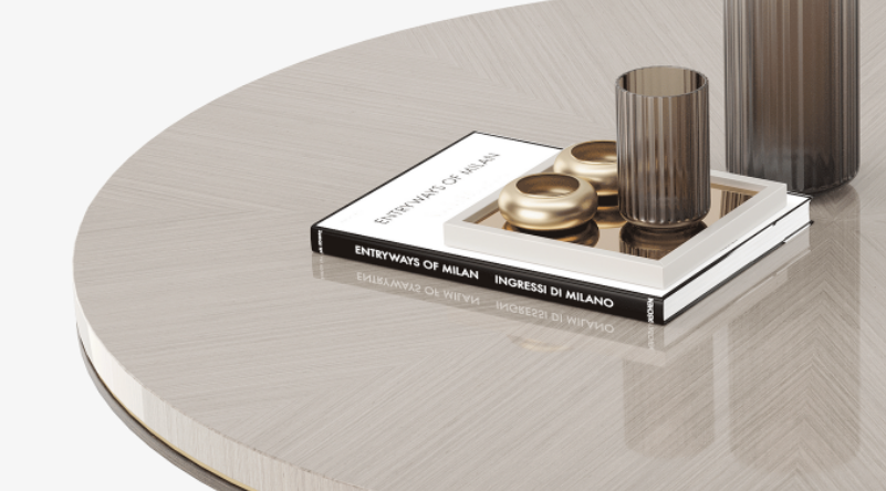 One for minimalists, the CADIZ amplifies its pared-back silhouette with a medley of luxurious materials in easy-to-integrate neutral tones. Look closely to discover elements of dark and light wood veneer, brushed brass, stone and even leather.