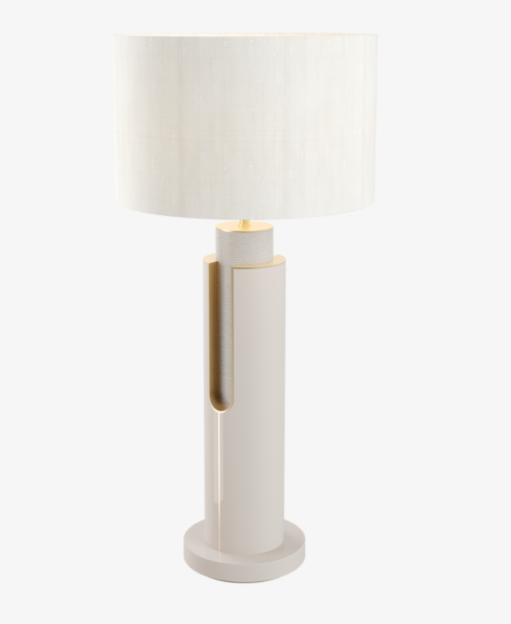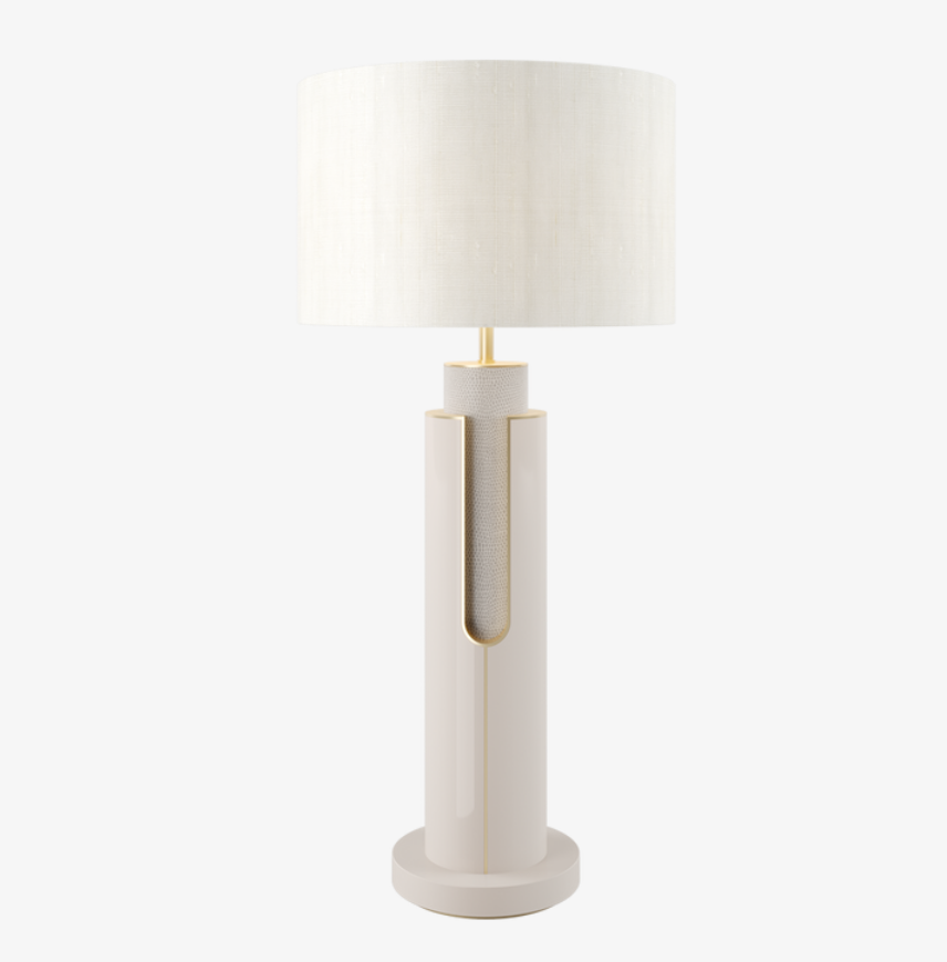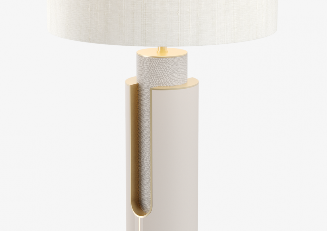 The artfully deconstructed design of the PASADENA table lamp beautifully showcases FRATO's skilled craftsmanship and passion for materials. Luxurious leather combines with lacquered wood and delicate brushed-brass trims, all of which are enhanced by a cutaway detail.