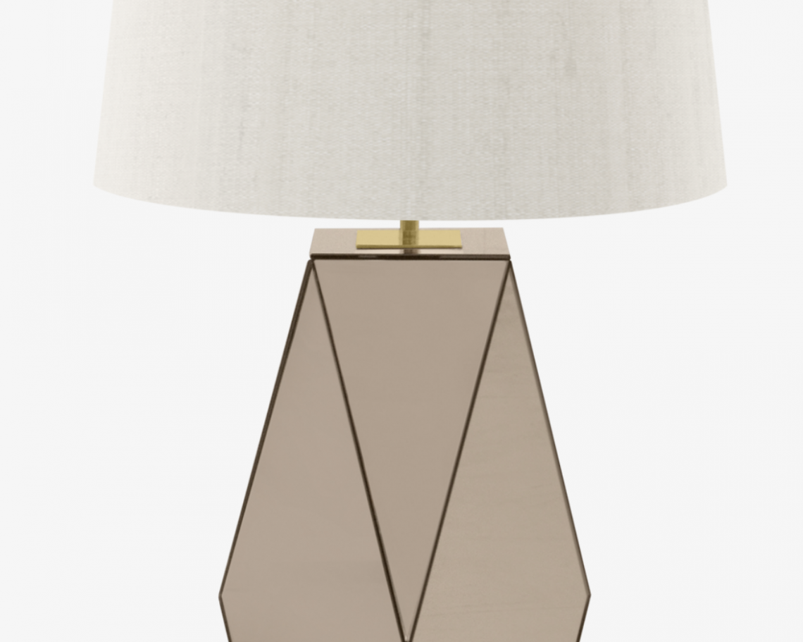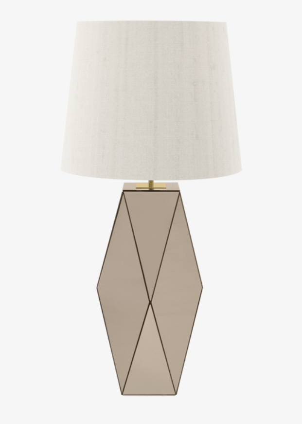 The spellbinding VALENCA puts the glamour into table lamps. Crafted from sections of bronze mirror the multifaceted base will reflect fractions of light by day and night, while a double-silk shade provides a classic finish.