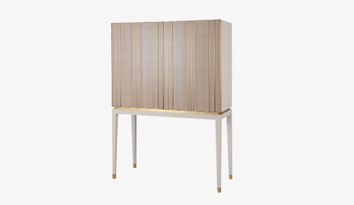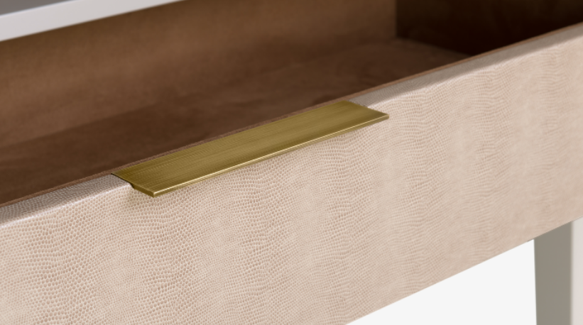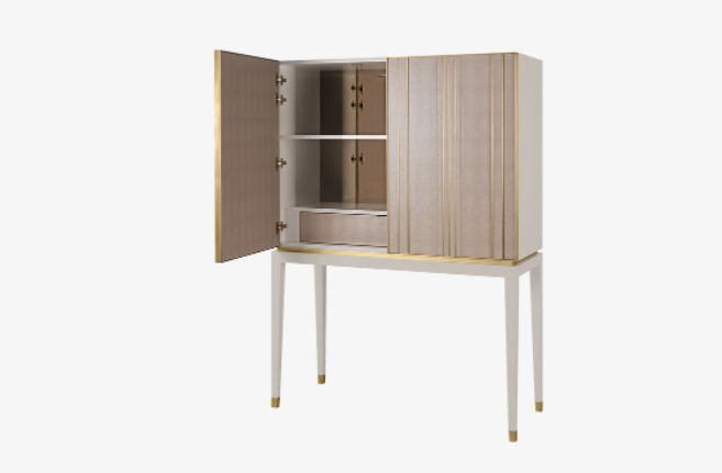Storage that catches the eye but also keeps your space feeling calm - the ASCOT ticks both boxes. Distinguished by brushed-brass embellishments that line the leather-covered doors, its organised interior features a shelf, leather-fronted suede-lined drawer and bronze mirror back.