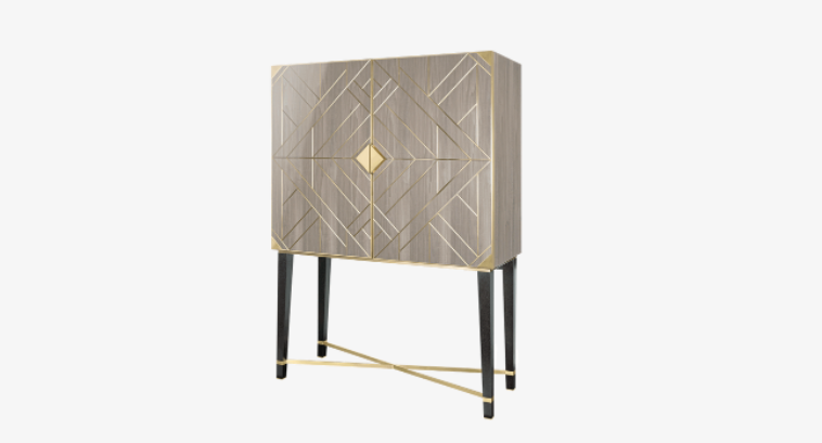 The sublime SIRMIONE tall cabinet makes its mark thanks to an intricate diamond-inspired design that enhances its doors and carries through to its characteristic handles.