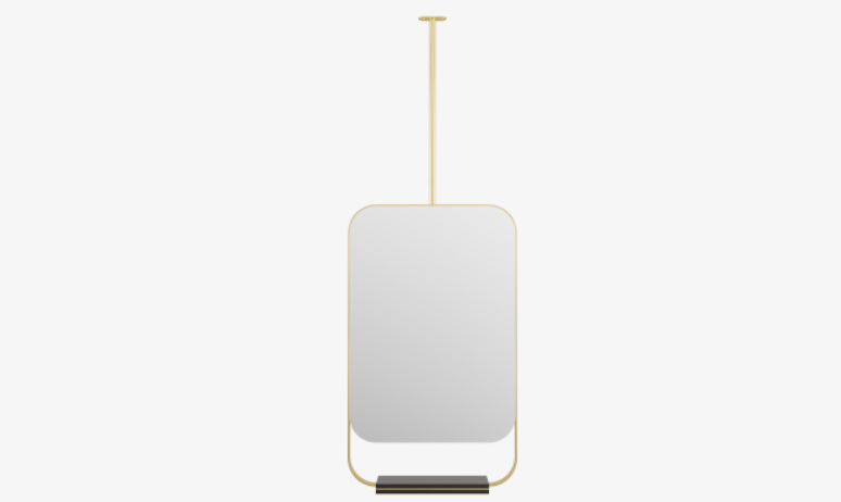 Distinguished by a ribbon-thin brass frame that incorporates a small wooden shelf, the BONDI mirror can be hung from the ceiling, offering you greater versatility when it comes to bathroom layout.