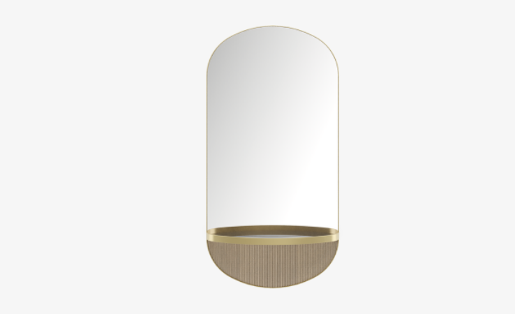 Above your vanity or as a feature finish for your lounge wall, the CAPE TOWN mirror makes a statement with its orbital curves. The solid wood ledge give it a modern feel, while brushed brass adds a chic finish.