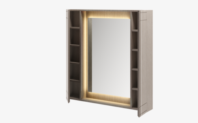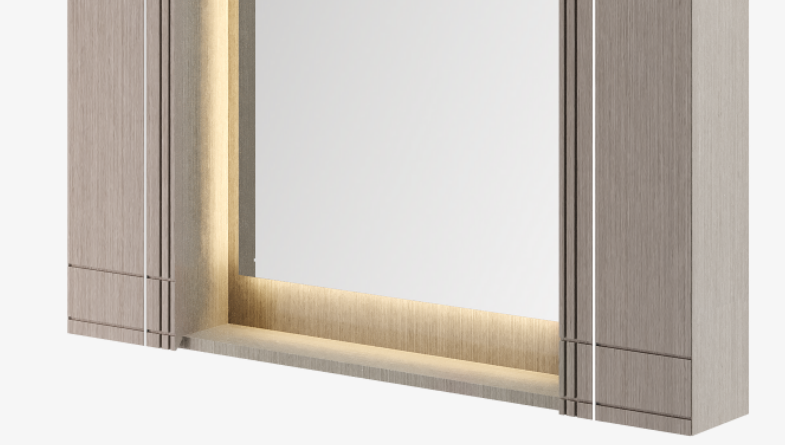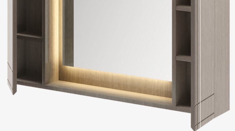 Sized to fit with the matching vanity unit, the large COVENTRY mirror features a glossy veneer surround embellished with polished steel and a fuss-free mirror that can be back-lit for a soft, ambient glow.
