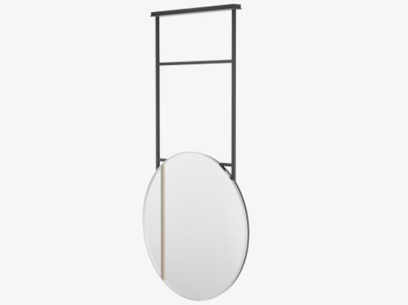 A lesson in geometry, the ultra modern KYIV II mirror combines structured angles and soft curves. The ceiling-mounted design means it can be hung above your vanity to create a sense of space and light.