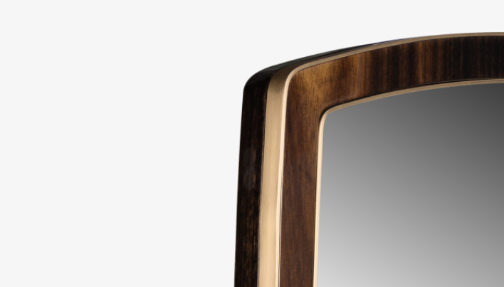 A shapely, mid-length mirror measuring 1,000 millimetres in height, the beautiful TRIBUTO is subtly inspired by the stylings of mid-century modernism. Made from glossy dark wood veneer edged with seams of brushed brass, this quietly characterful design is a joy to behold.