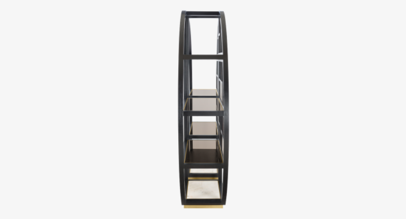 The shelves of the Orientally-influenced NARA bookcase are inlaid with bronze mirror, which gently reflects any object placed on top. This bookcase consisting of two perfectly symmetrical halves can be placed together as one or positioned apart.
