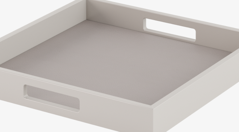 A perfect square, the AVEIRO I Tray is a chic way to arrange ornaments and accessories. Made from glossy lacquered wood, it’s inlaid with soft, tonal leather that’s embroidered with a cross sign.