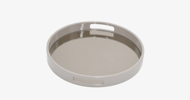 A classic tray with cut-out handles, the VISEU I is formed of lacquered wood inlaid with bronze mirror, a delectable pairing of form with function.