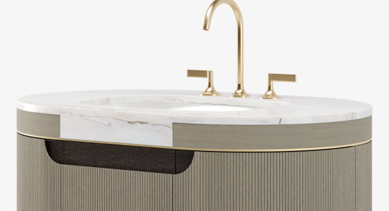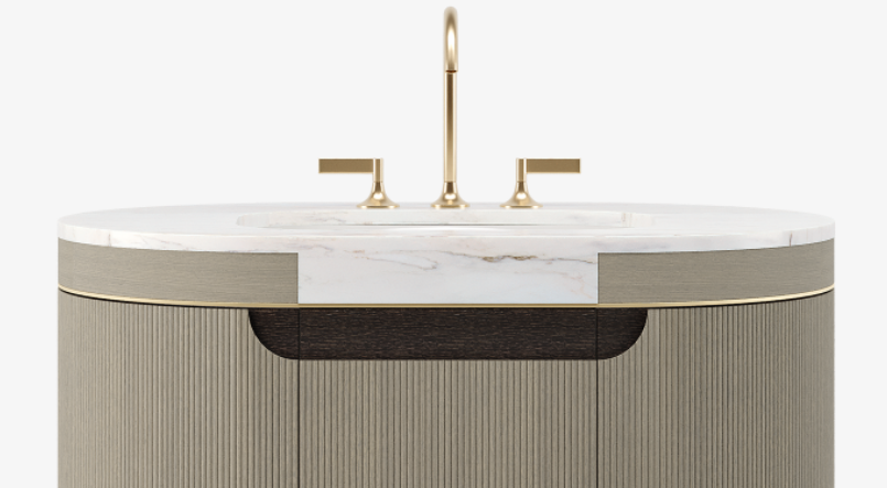 Complete your bathroom with the CAPE TOWN vanity. Its solid, curved structure makes a simple statement, while the satin veneer brings a clean finish.