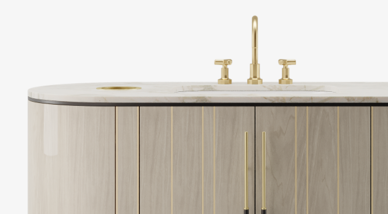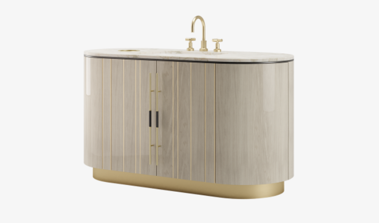 Featuring a glossy wood veneer structure, a smooth marble top, discrete door handles and a towel rail, the SALAMANCA vanity unit possesses an understated elegance that quietly speaks volumes. If more surface space is high on your bathroom wish list, look to the attractive SALAMANCA vanity unit, which has generous sink-side space that also incorporates a handy used-towel depository.