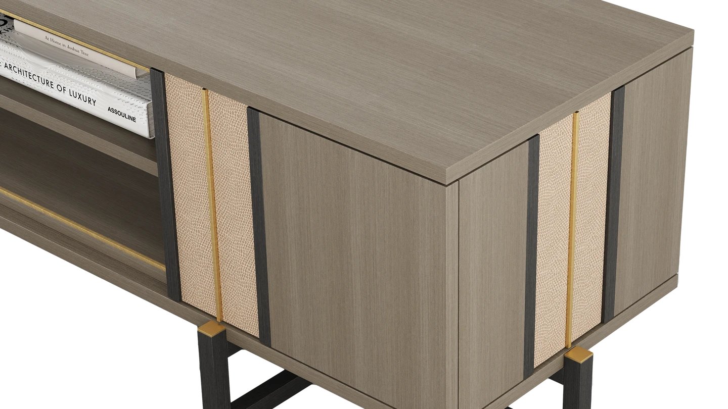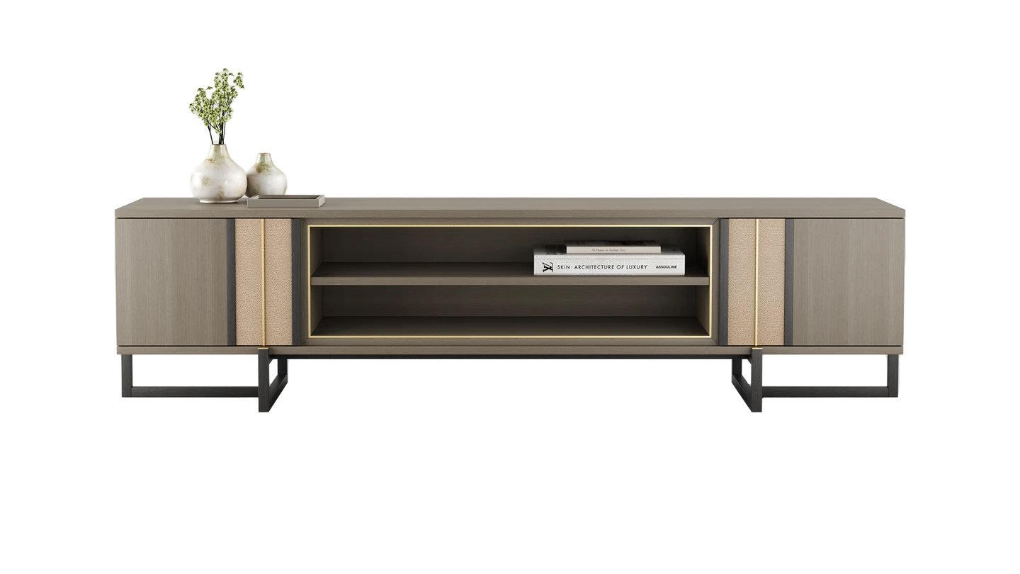 Brushed brass details perfectly offset the smooth wood finish of our GEORGIA TV Unit. It has just enough space for your TV, books and vases, too.