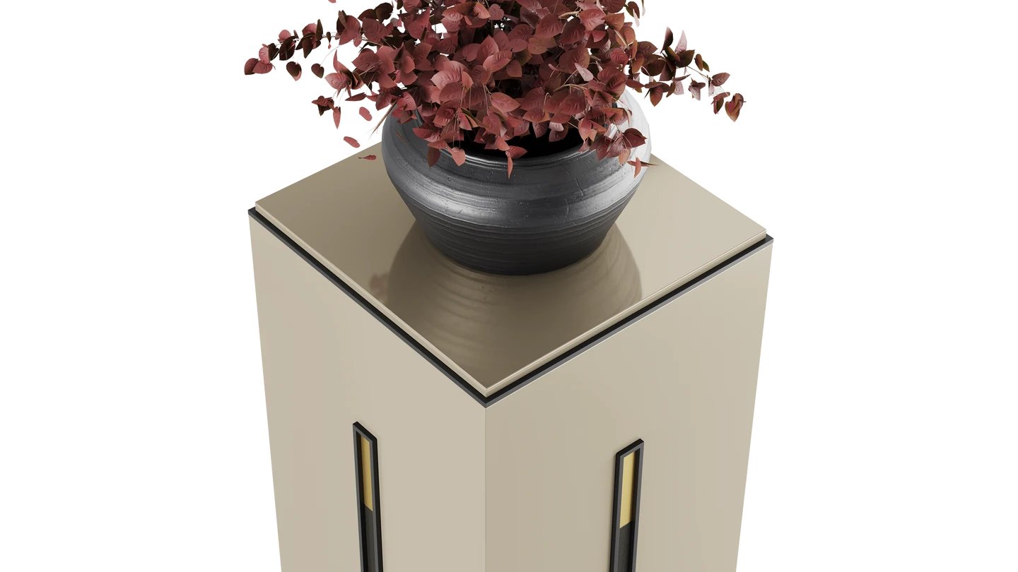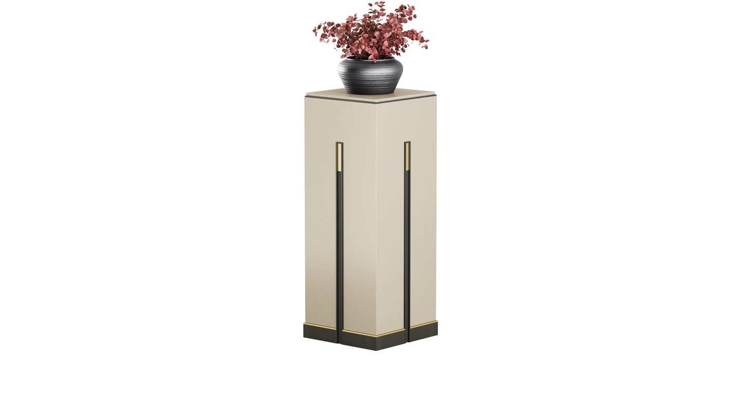 The MUMBAI Pedestal is perfect for displaying freshly cut blooms. Its structure is finished in satin wood veneer and brushed brass details to bring to life that lost corner of your space.