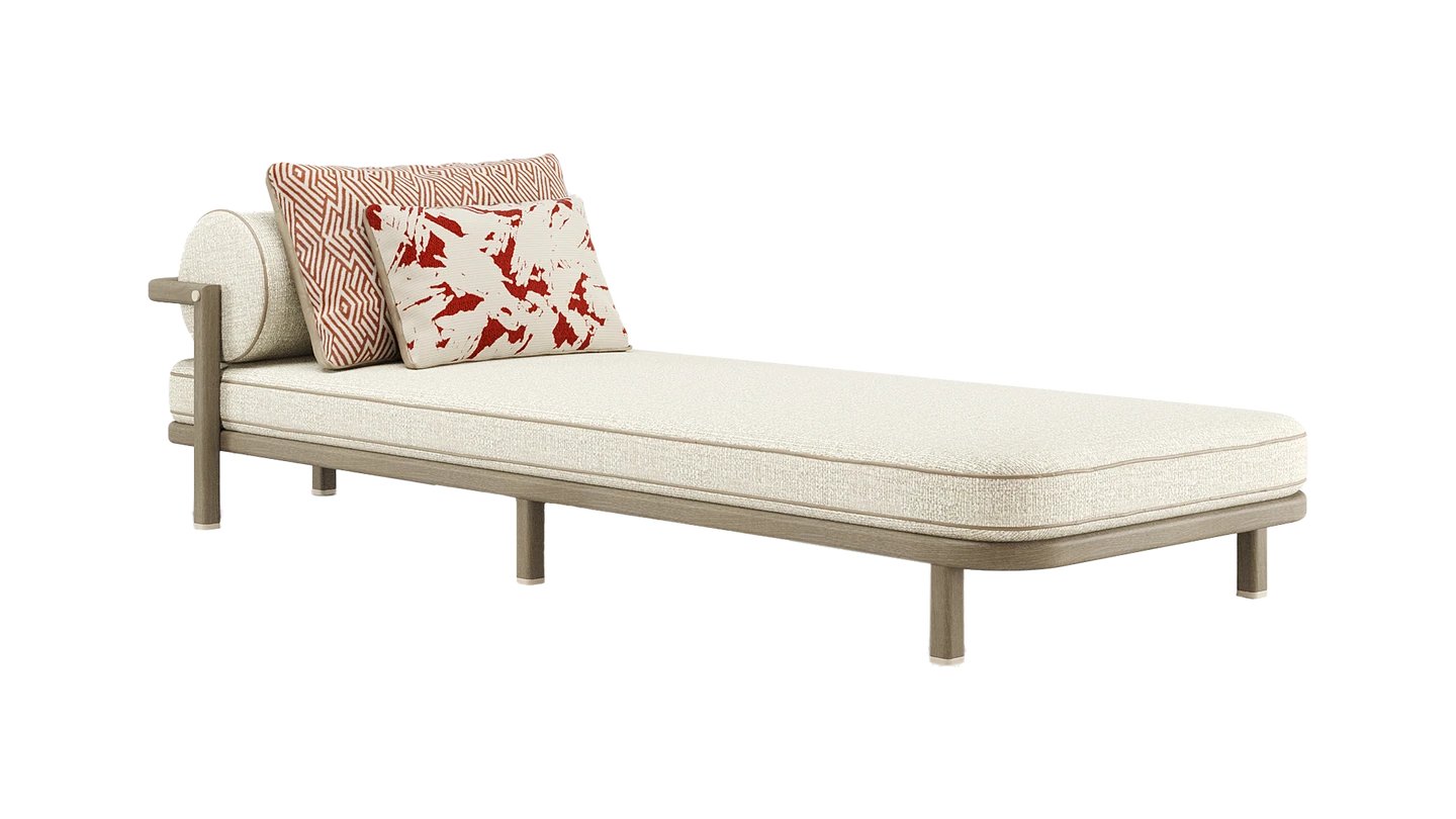 "Poolside just got even more picturesque… Introducing our SAINT-TROPEZ Sun Lounger, designed to bring style to life by the pool. It’s best paired with blue skies, cold drinks and the rest of the SAINT-TROPEZ collection. Combining simple shapes with premium materials, the seat and bolster cushion are crafted from soft fabric and highlighted with leather piping. The structure marries muted stainless steel with solid wood. "