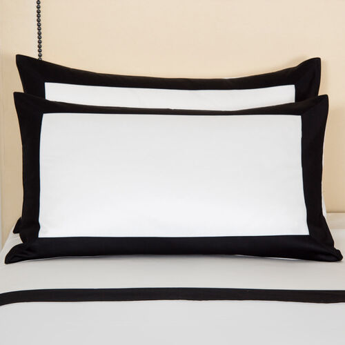 The Bold Pillowcase features soft, long-staple cotton sateen and a striking contrast border finished with a sleek simple stitch.