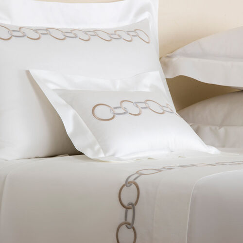 The Links Embroidery Sham is composed of smooth and lustrous long-staple cotton sateen and features a beautifully crafted chain embroidery on its front side.