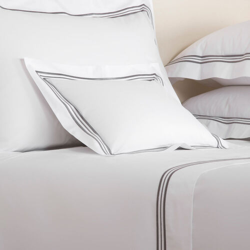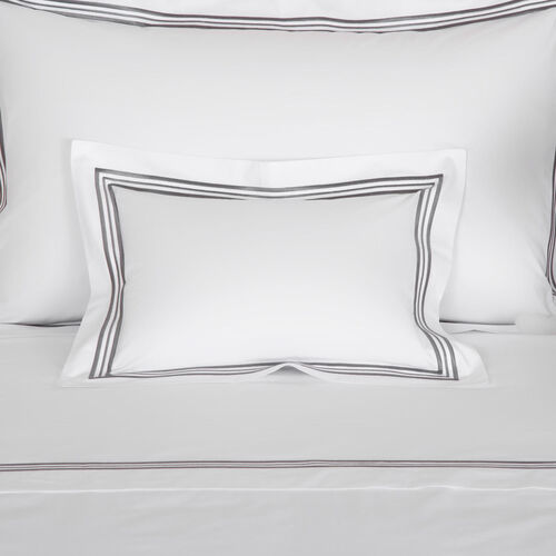 Soft and smooth with high shine, the Triplo Bourdon Boudoir Sham is crafted from pure cotton poplin and embellished with a three-line embroidery.
