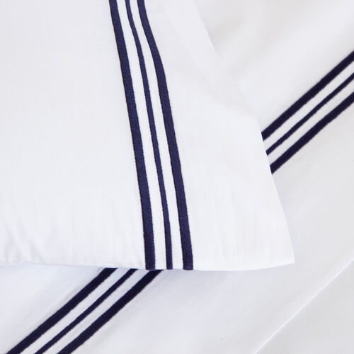 Soft and smooth with high shine, the Triplo Bourdon Pillowcase is crafted from pure cotton poplin and embellished with a three-line embroidery.