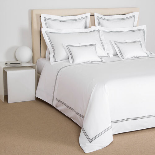 Soft and smooth with high shine, the Triplo Bourdon Pillowcase is crafted from pure cotton poplin and embellished with a three-line embroidery.
