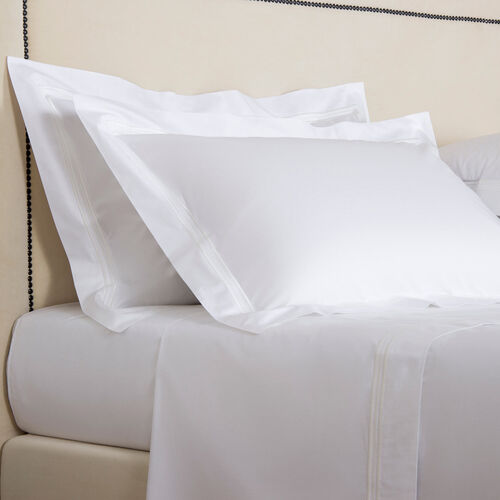 Soft and smooth with high shine, the Triplo Bourdon Sham is crafted from pure cotton poplin and embellished with a three-line embroidery