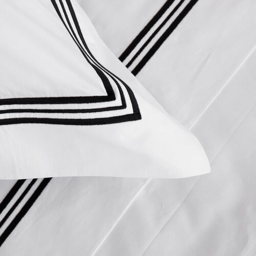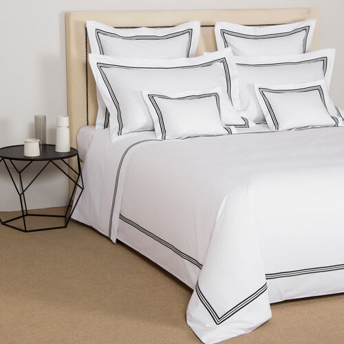 Soft and smooth with high shine, the Triplo Bourdon Sham is crafted from pure cotton poplin and embellished with a three-line embroidery