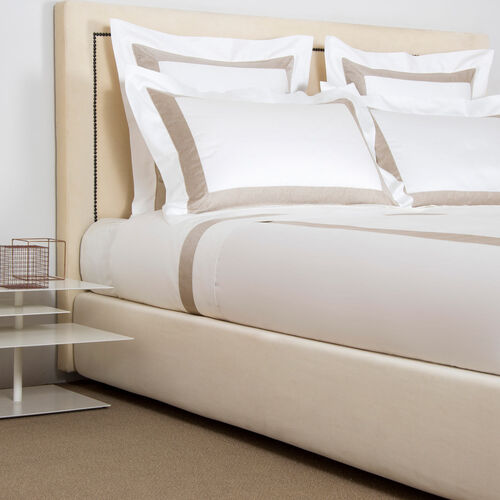 The warm, silk cotton sateen fabric of the Forever Border duvet cover makes your bed a beautiful oasis of peace and calm. The simple design and single hemstitch along the borders give this duvet cover an elegantly refined appearance that looks beautiful in a modern bedroom. Choose from a variety of duvet fillers from our selection, including down options and alternative fibres, to achieve your ideal night's sleep. Pure extra long staple cotton. Made in Italy.