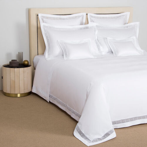Offering an elegant statement in minimal, romantic design, the Forever Lace duvet cover features warm and silky cotton sateen with inserted shagreen macramé lace along the borders. The subtle and delicate embroidered lace adds a luxurious touch to your bedroom.