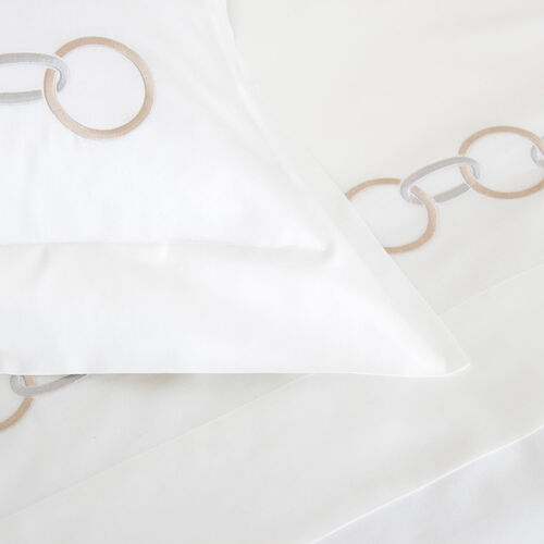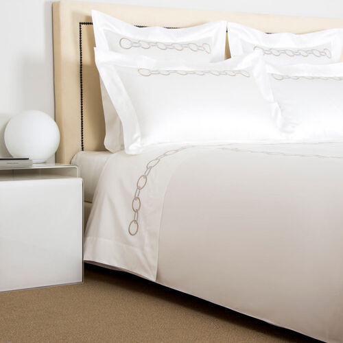 The Links Embroidery Duvet Cover features an elegant dual-tone chain design on soft and silky cotton sateen.