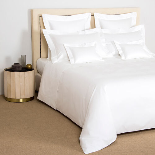 Slip between the soft fabric of the Net sheet set for a warm, harmonious slumber. Delicate to the touch, this sheet features a clean and simple jacquard pattern while also presenting a hint of abstract illusion. Pair these sheets with matching duvet cover and shams in the Net collection for a stylish and luxurious bedding experience. Pure extra long staple cotton. Made in Italy.